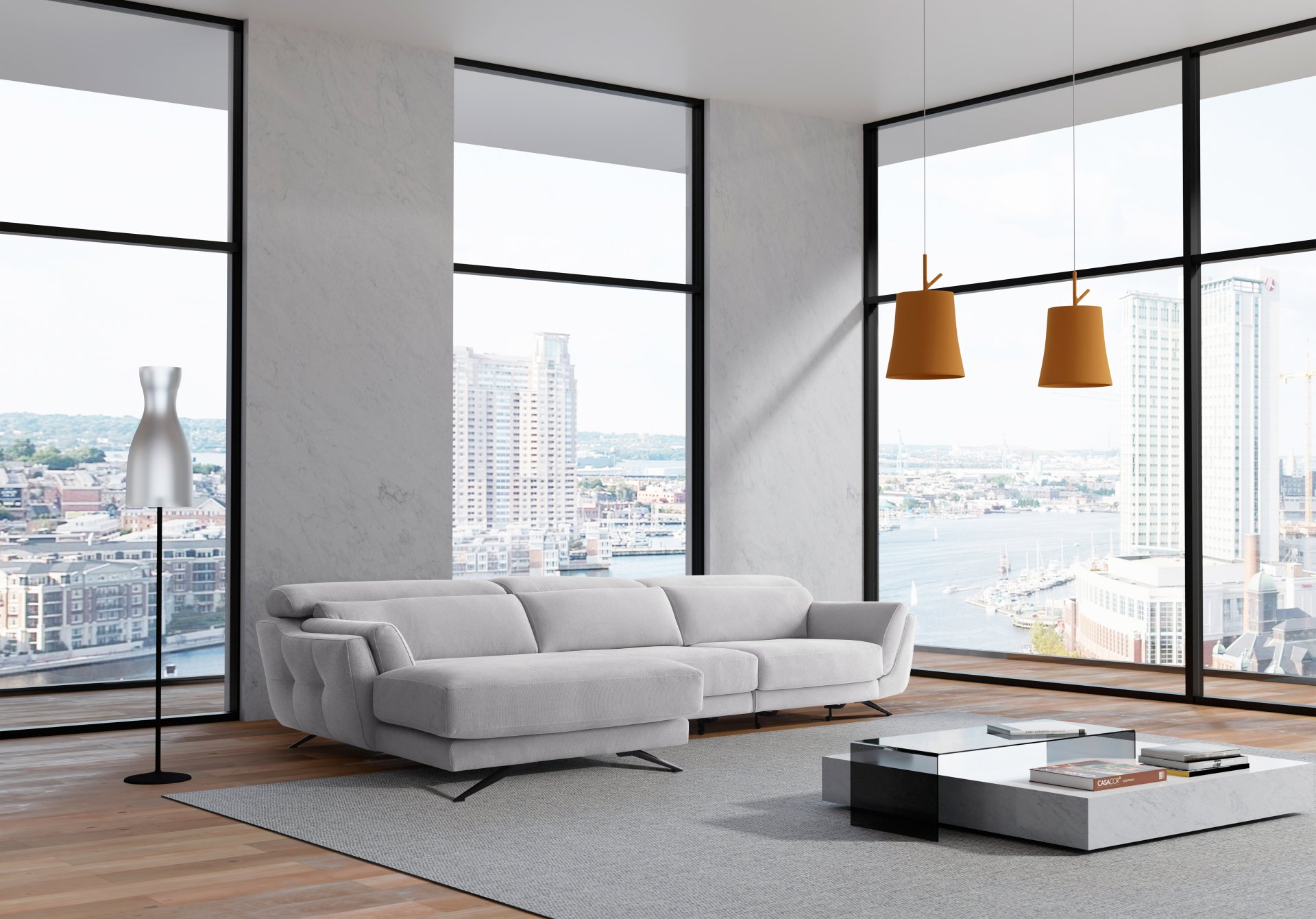 Multifunction sofas with the possibility of adjusting the depth of the seat and the height and inclination of the heads.