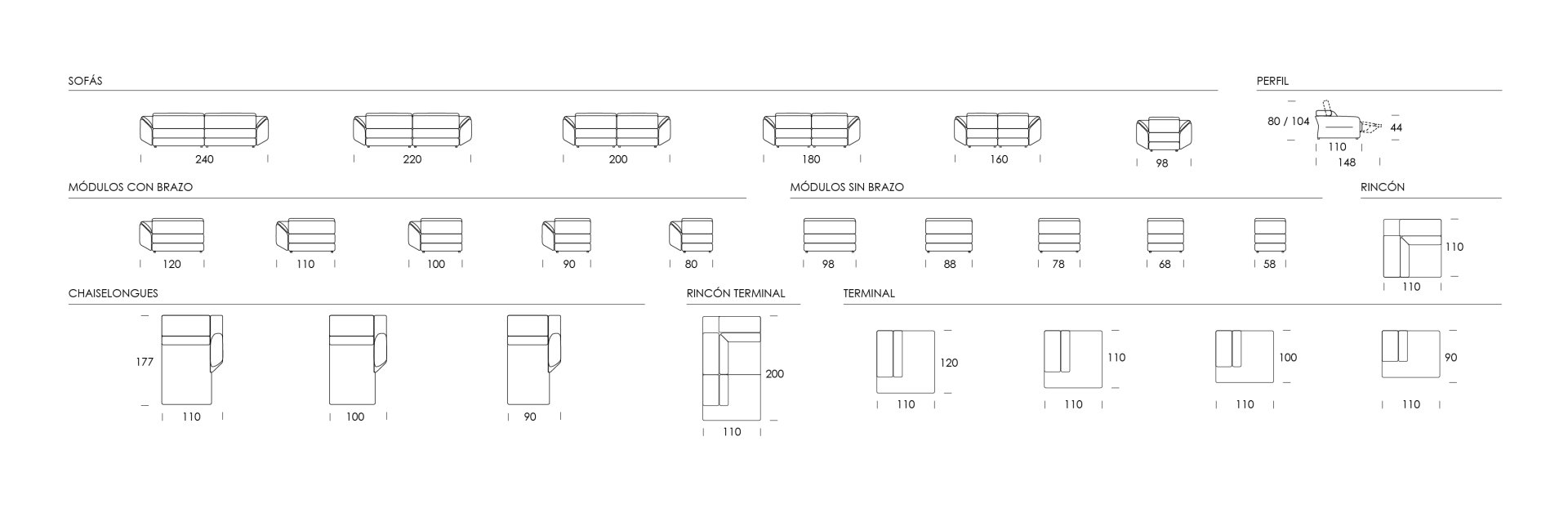 PARTES DESENFUNDABLES: Todos los cojines, asientos, respaldos y decorativos de brazos.