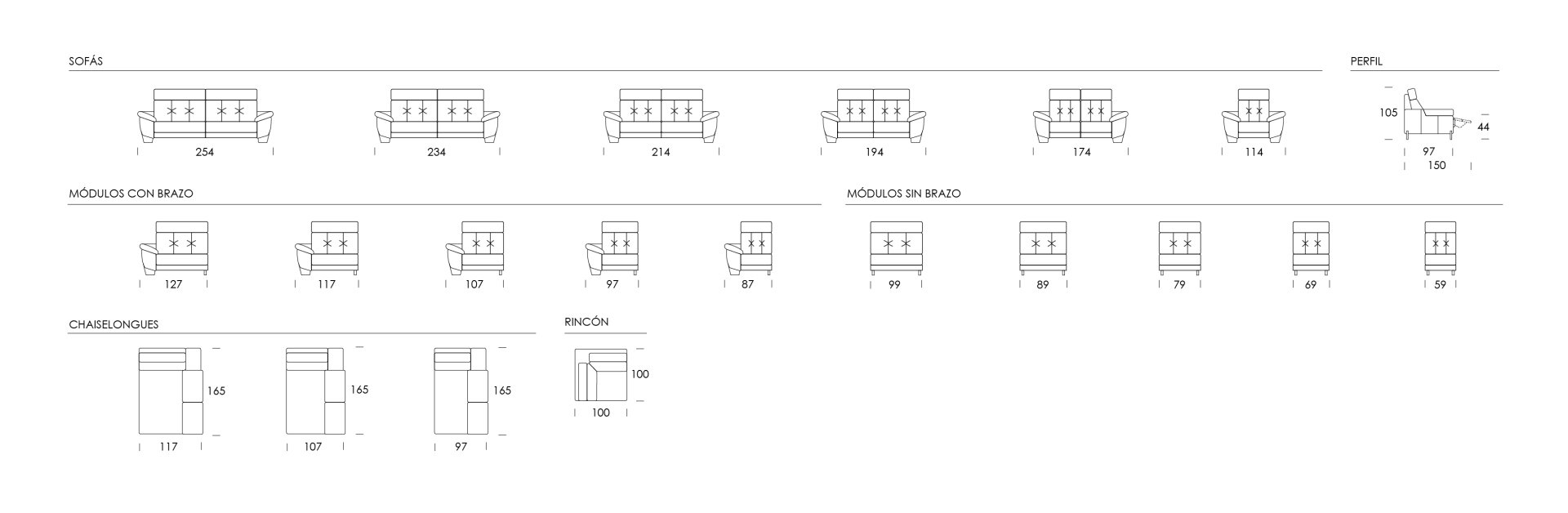 PARTES DESENFUNDABLES: Todos los cojines, asientos, respaldos y decorativos de brazos.